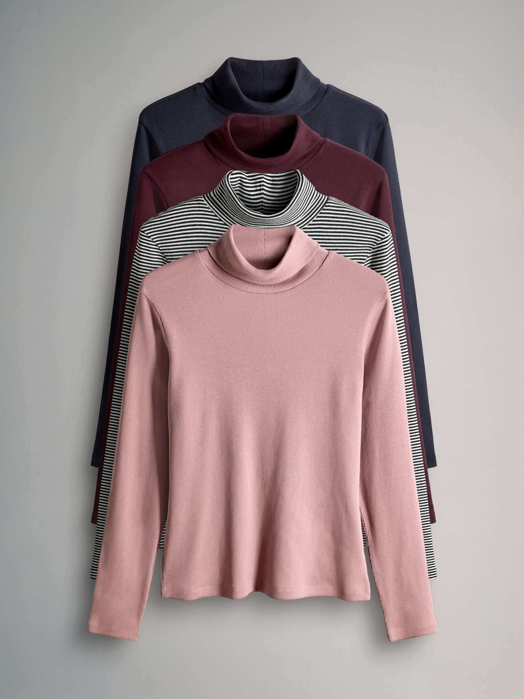 Shop for The Set 4 Pack Ribbed Roll Neck Long Sleeve T-Shirts Navy/Berry/Pink/Stripe at Next USA. International shipping and returns available. Buy now!
