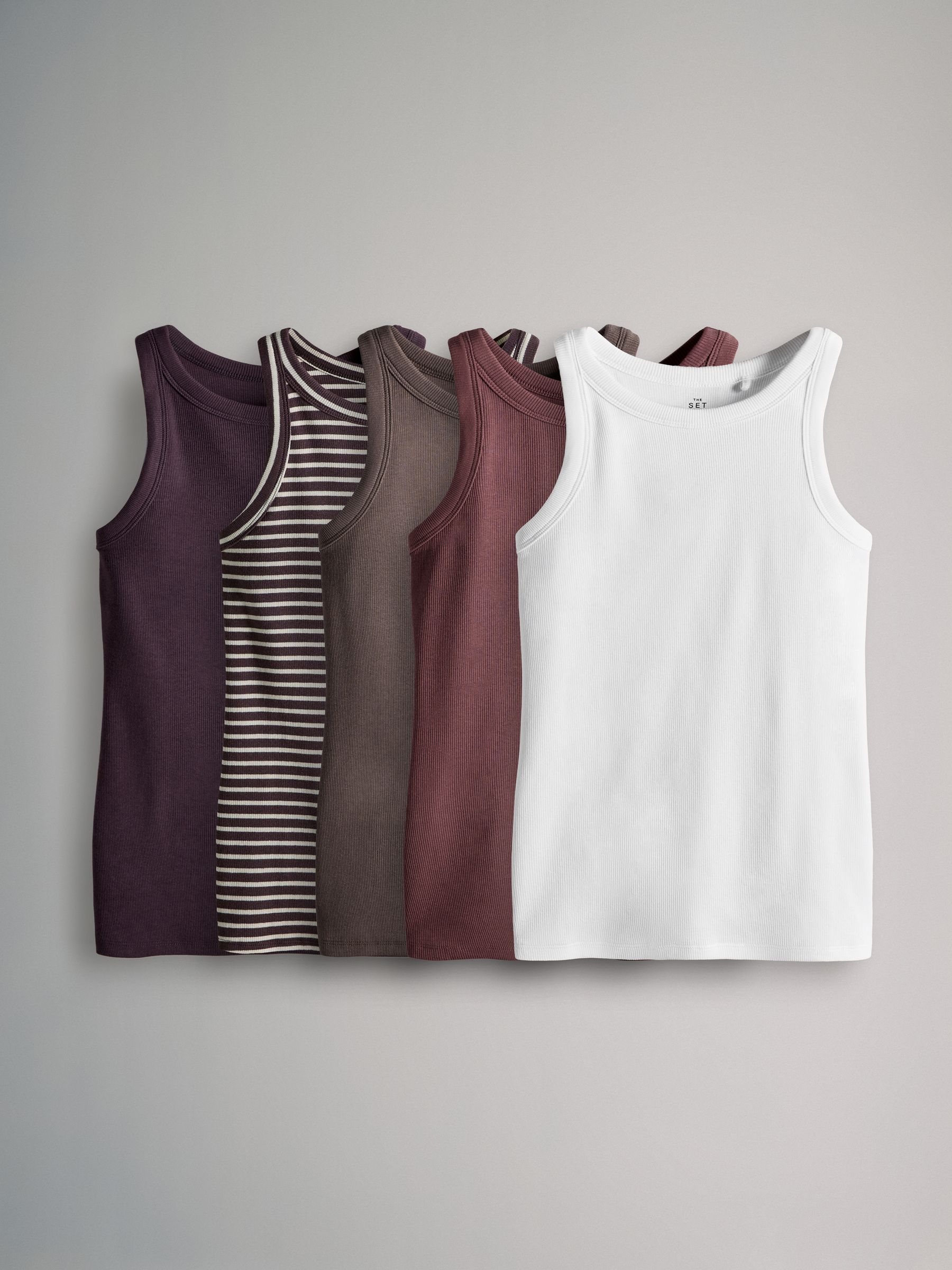 Shop for The Set 5 Pack Racer Ribbed Vests Purple/Stripe/Brown/Pink/White at Next USA. International shipping and returns available. Buy now!
