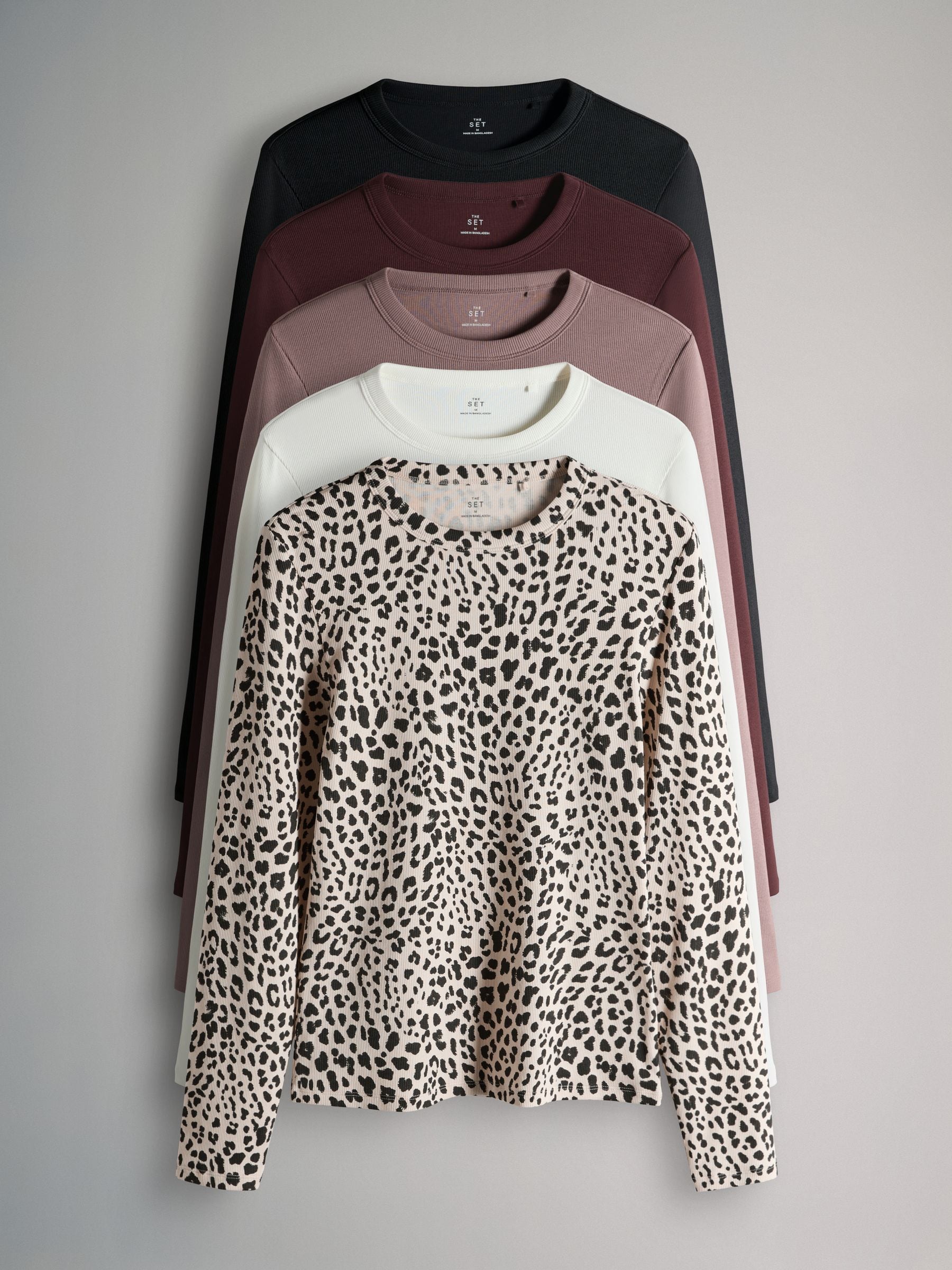 Shop for The Set 5 Pack Ribbed Long Sleeve T-Shirts Mauve/Berry/Leopard/Black/Cream at Next USA. International shipping and returns available. Buy now!