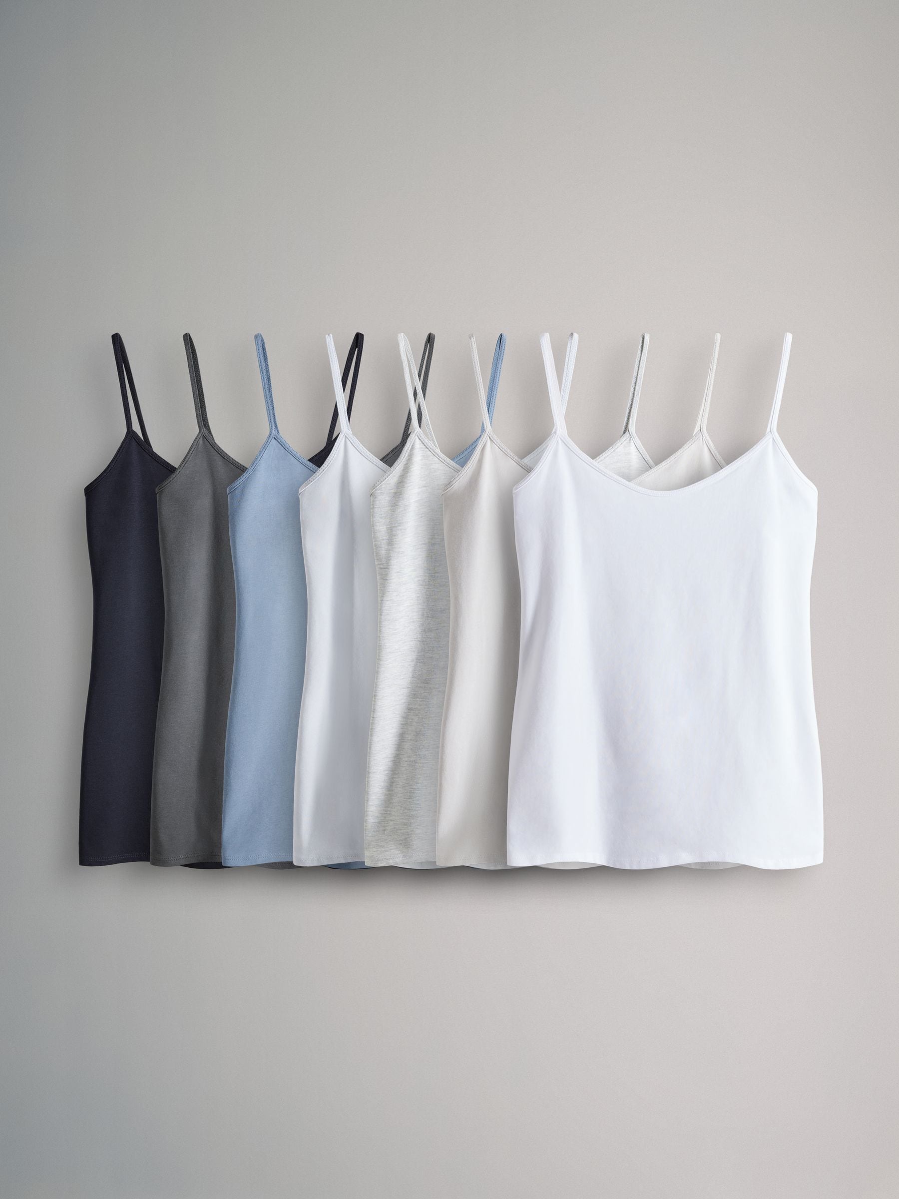 Shop for The Set 7 Pack Thin Strap Vest Tops Black/Grey/MidBlue/Blue/Grey Marl/Light Grey/White at Next USA. International shipping and returns available. Buy now!